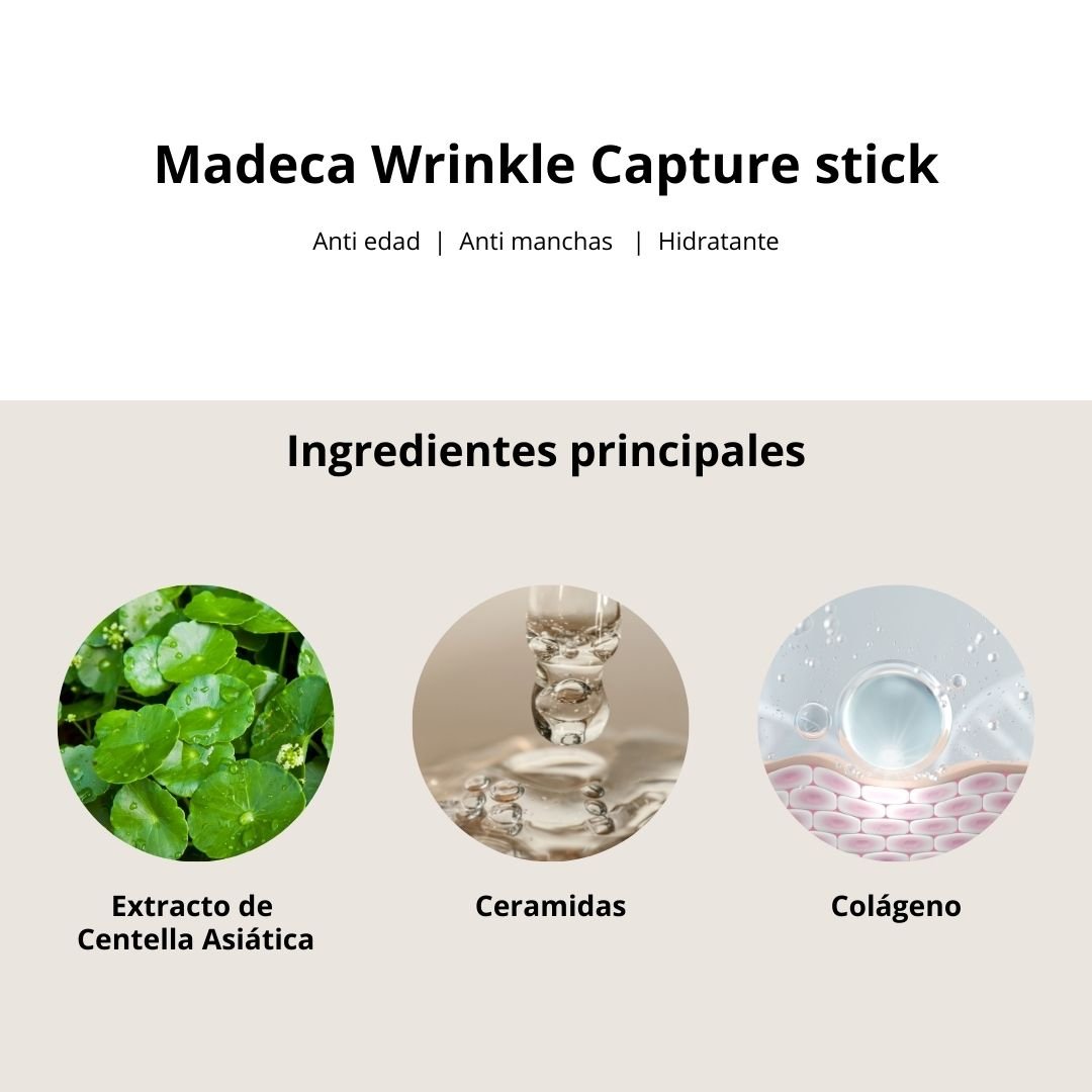 El Madeca Wrinkle Capture Stick de Centellian24 es un tratamiento antienvejecimiento intensivo en formato barra, diseñado para combatir de forma práctica y eficaz los principales signos del envejecimiento. Ayuda a suavizar líneas finas y arrugas, mejorar la elasticidad de la piel y aportar un efecto lifting visible en cada aplicación.
