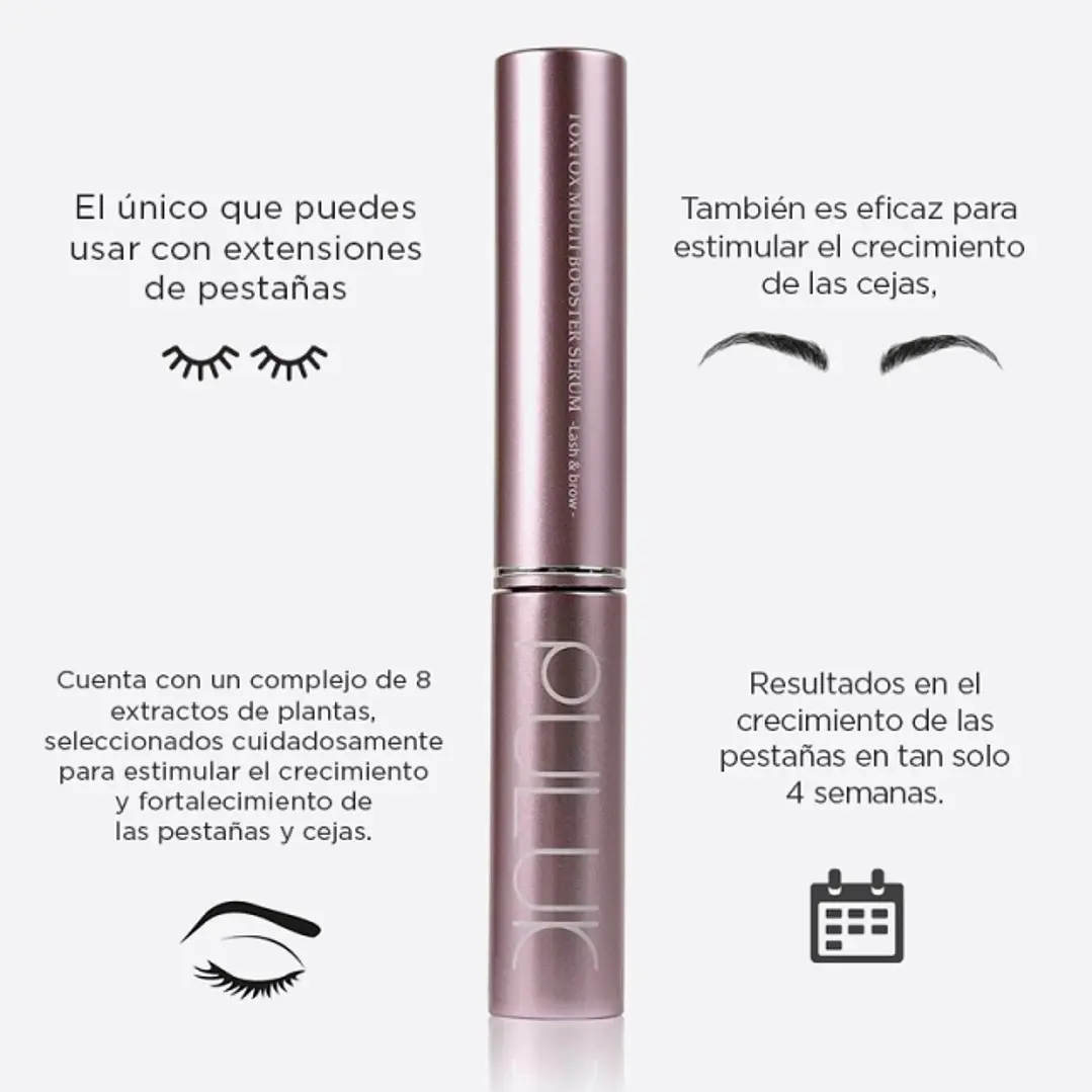 El PULUK – TOXTOX Multi Boost Serum es un sérum fortalecedor multifunción diseñado para estimular el crecimiento y mejorar la apariencia de pestañas, cejas y zonas con cabello debilitado, como entradas o áreas con menor densidad. Su fórmula combina activos nutritivos y reparadores que ayudan a fortalecer desde la raíz, aportando un aspecto más saludable, poblado y definido.